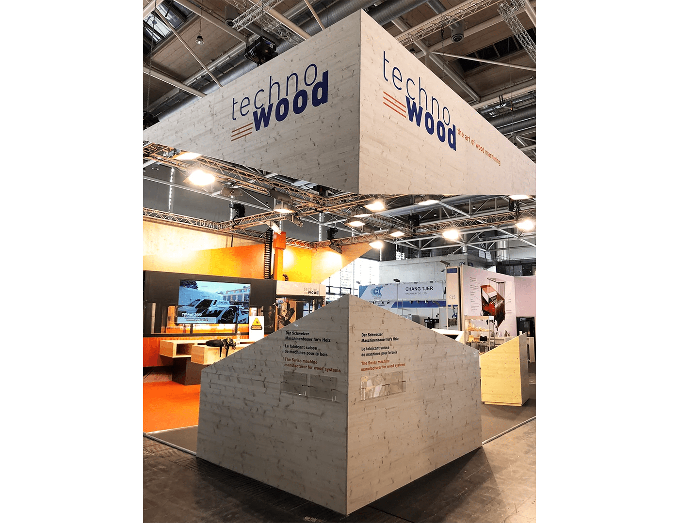 ? Im ersten Jahr lösten wir das Problem mit Grafiken und 3D-Elementen. Später wurde auf die Maschine ganz verzichtet und der Messestand fungierte als Infopoint und für den Kundenkontakt. Dafür dienten die Touchtable-Stationen, welche wir mit Fichtenholz verkleideten, um doch noch Details der Holzverarbeitungsmaschinen aufzunehmen. Der Stand wurde entsprechend gebaut, dass er auf zwei Messen verwendet werden konnte (Hannover und Basel).