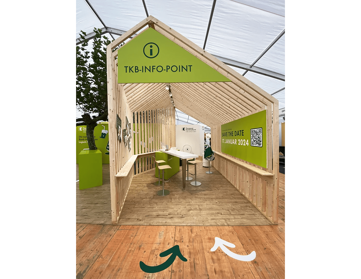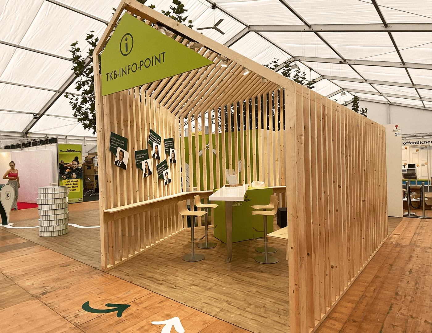 Dies kann nur mit Holz veranschaulicht werden. So entstand die Idee vom Lamellenhaus, welches einen enormen Eyecatcher für die TKB bedeutete. Das mittlerweile fünfmal eingesetzte Haus ist noch immer in einem guten Zustand und wir haben die Aufgabe der Nachhaltigkeit mit Bravour bestanden